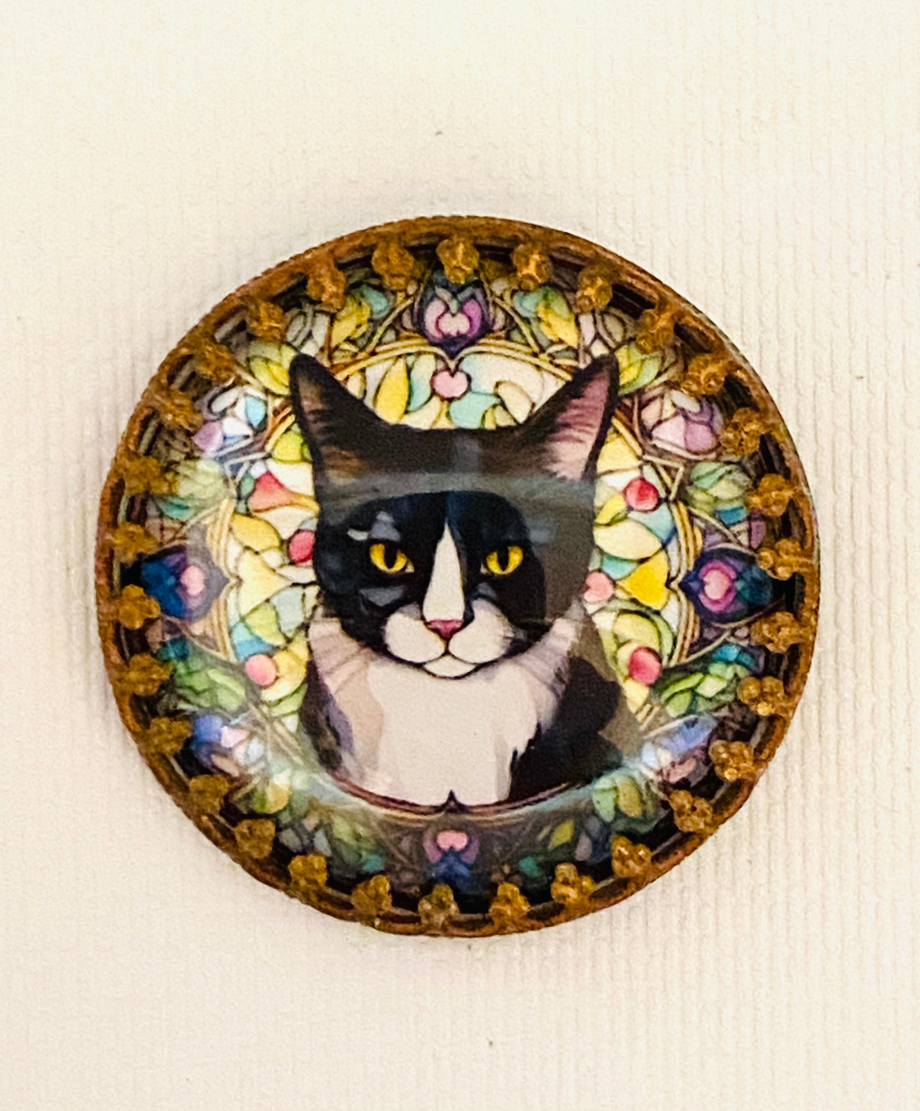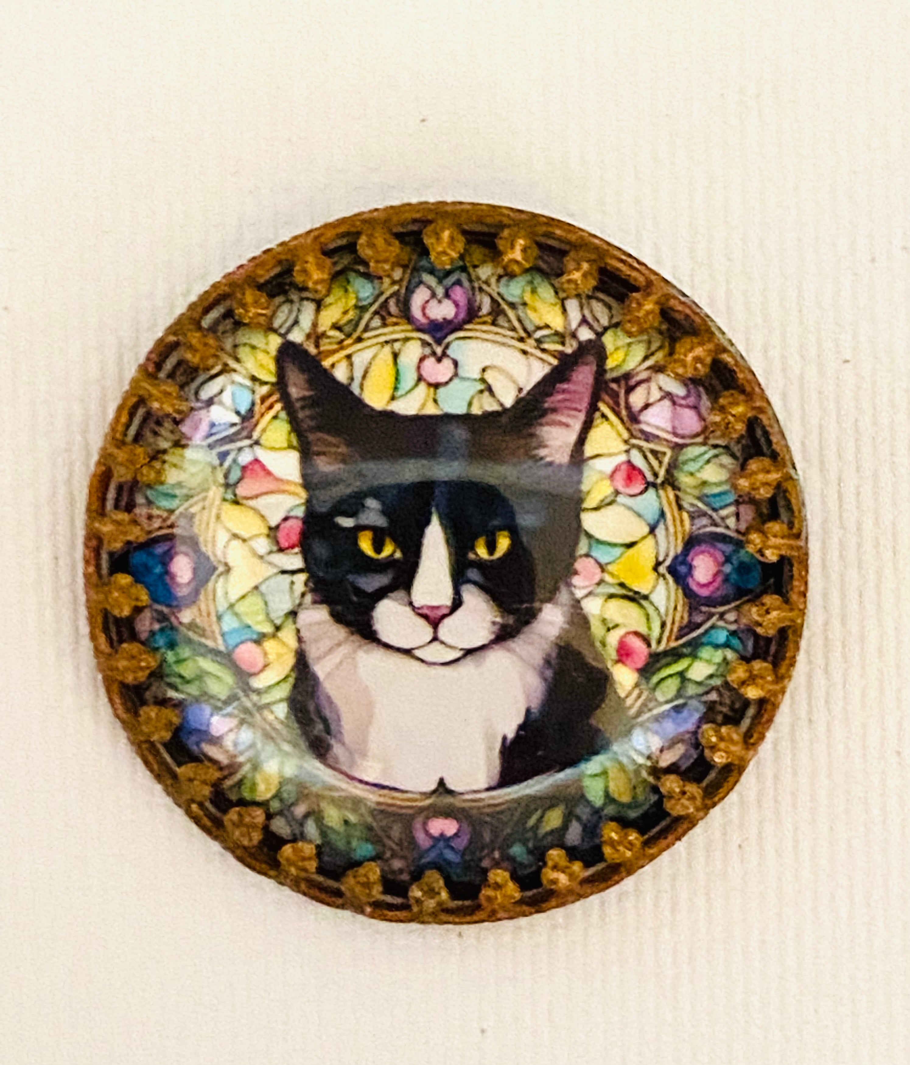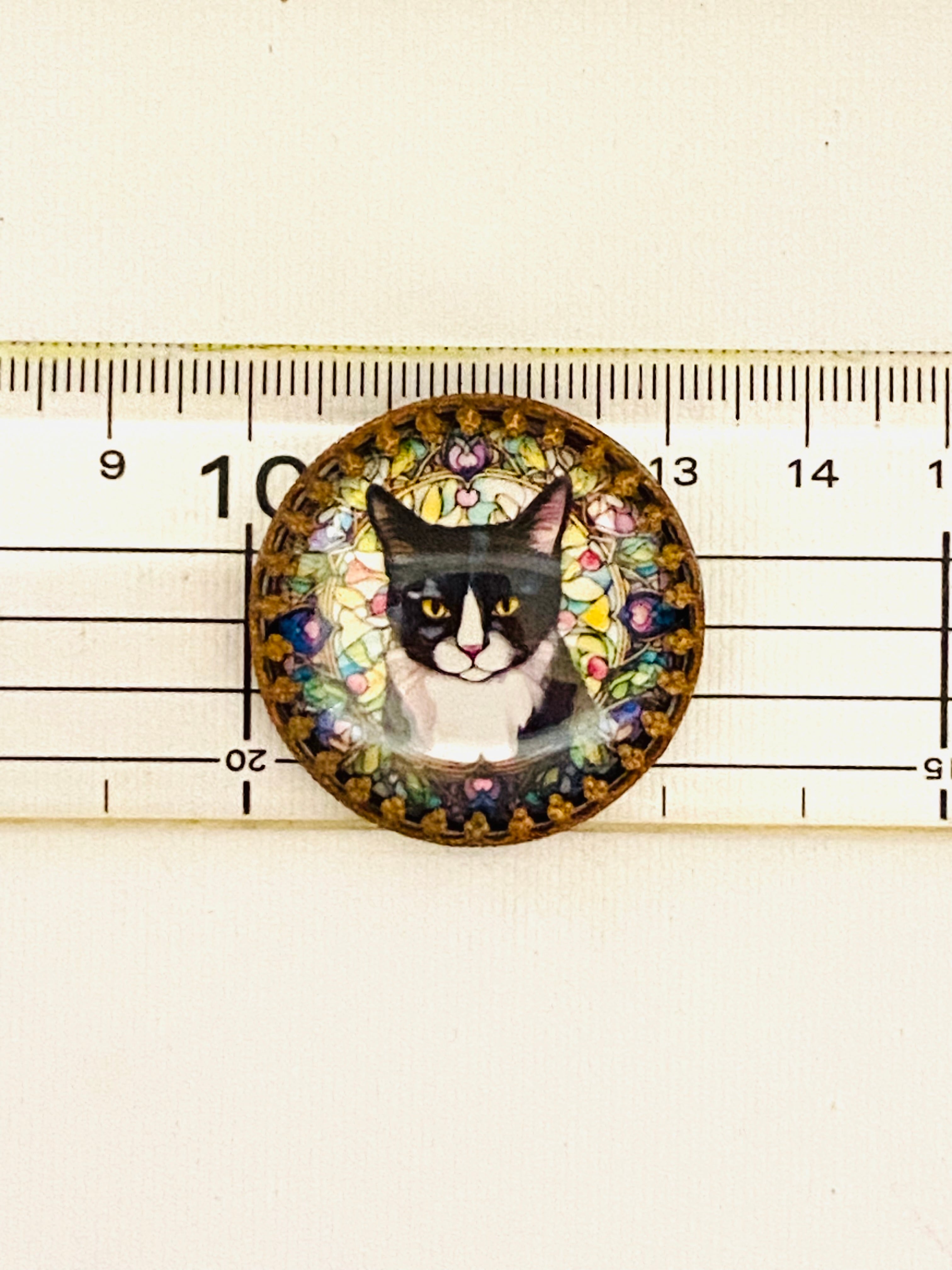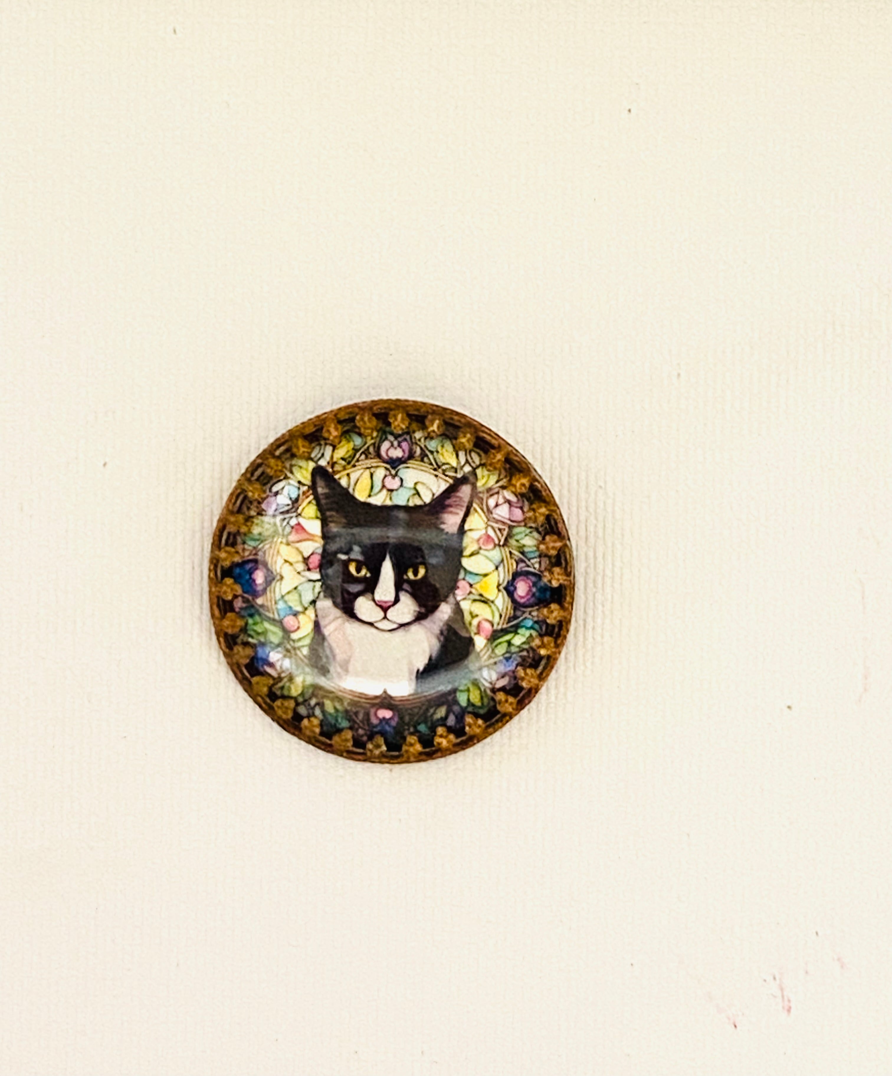 【再入荷】黒白猫さんの真鍮ドームクリスタルガラスボタン【チェコより入荷】