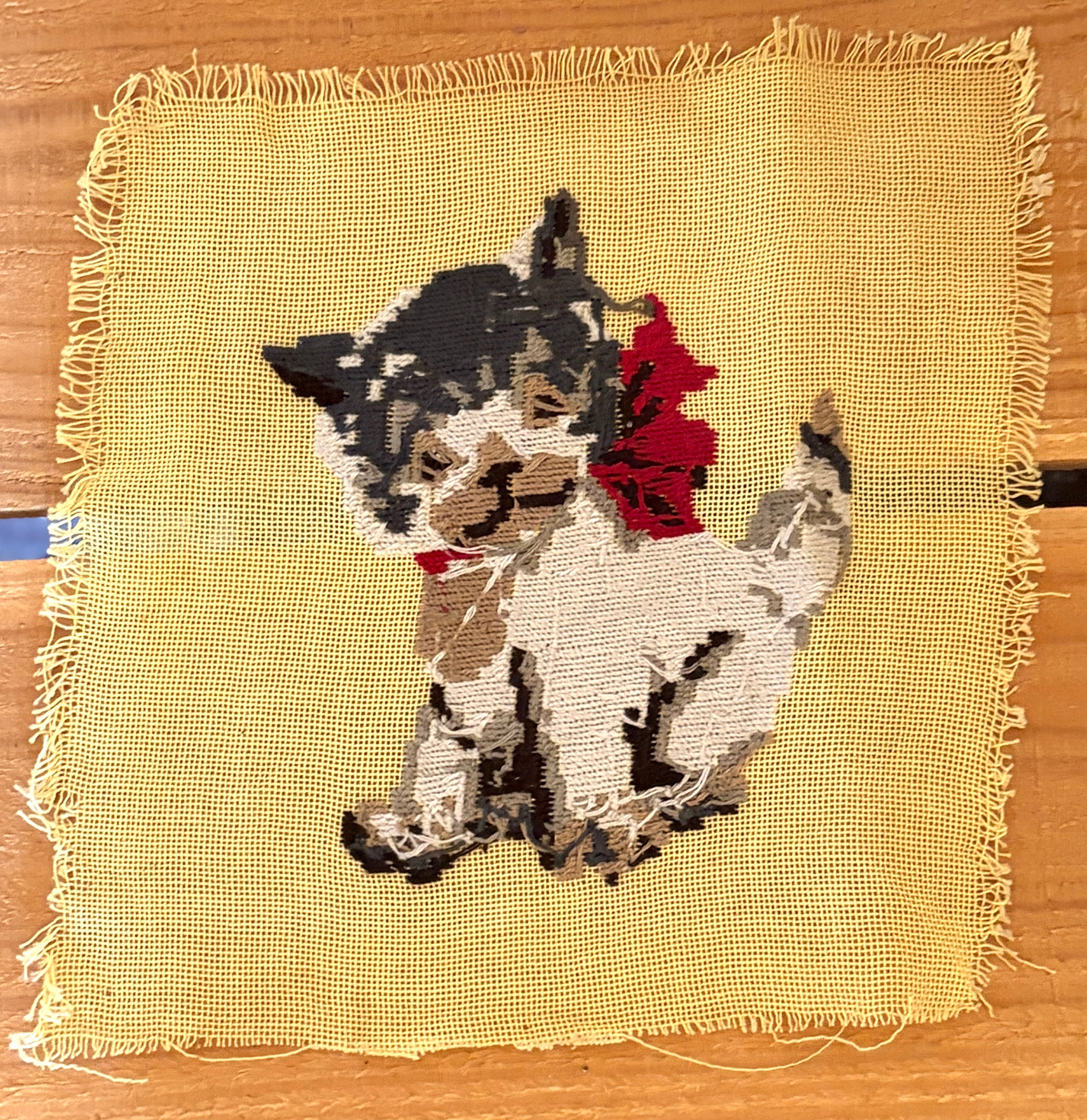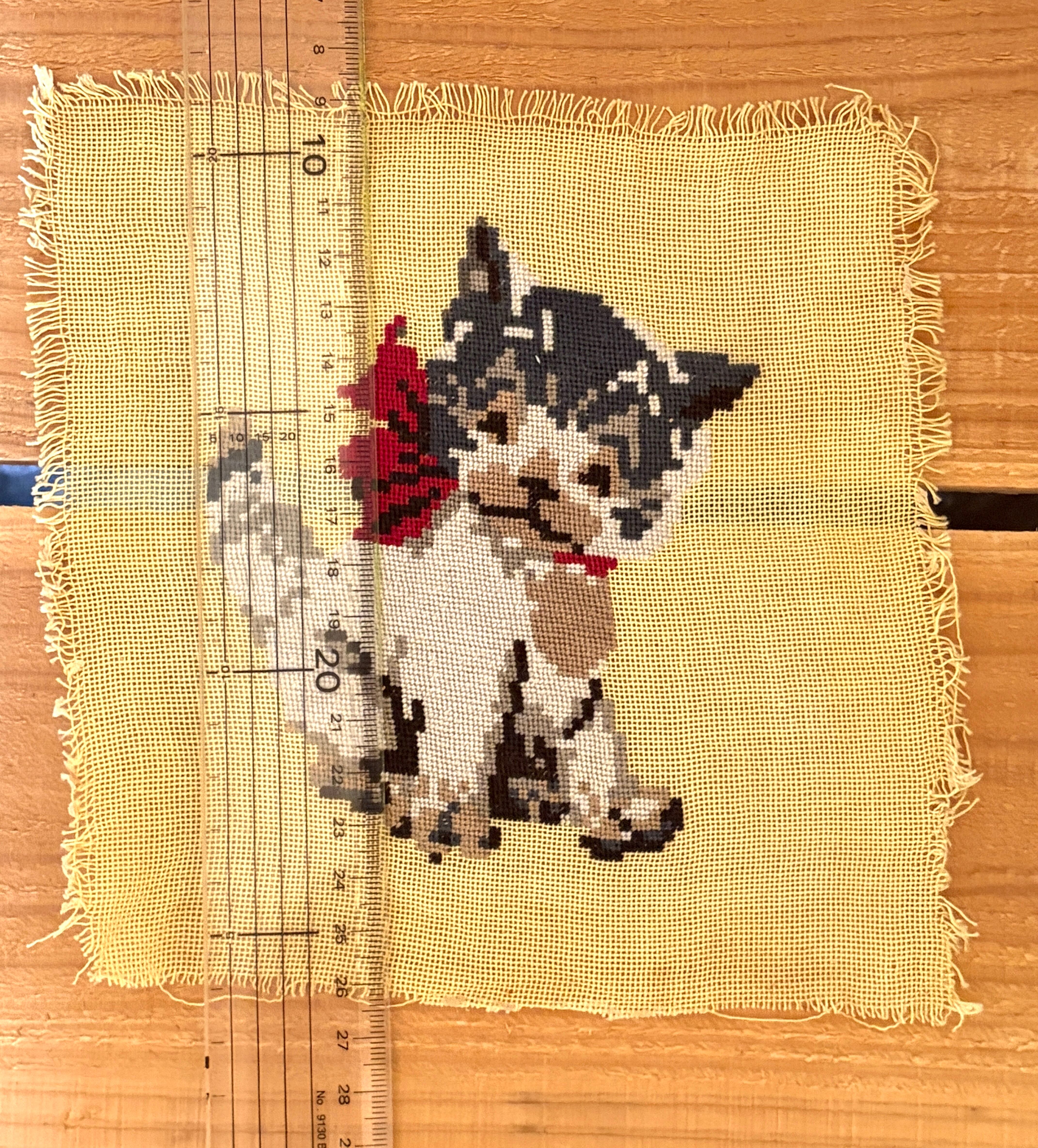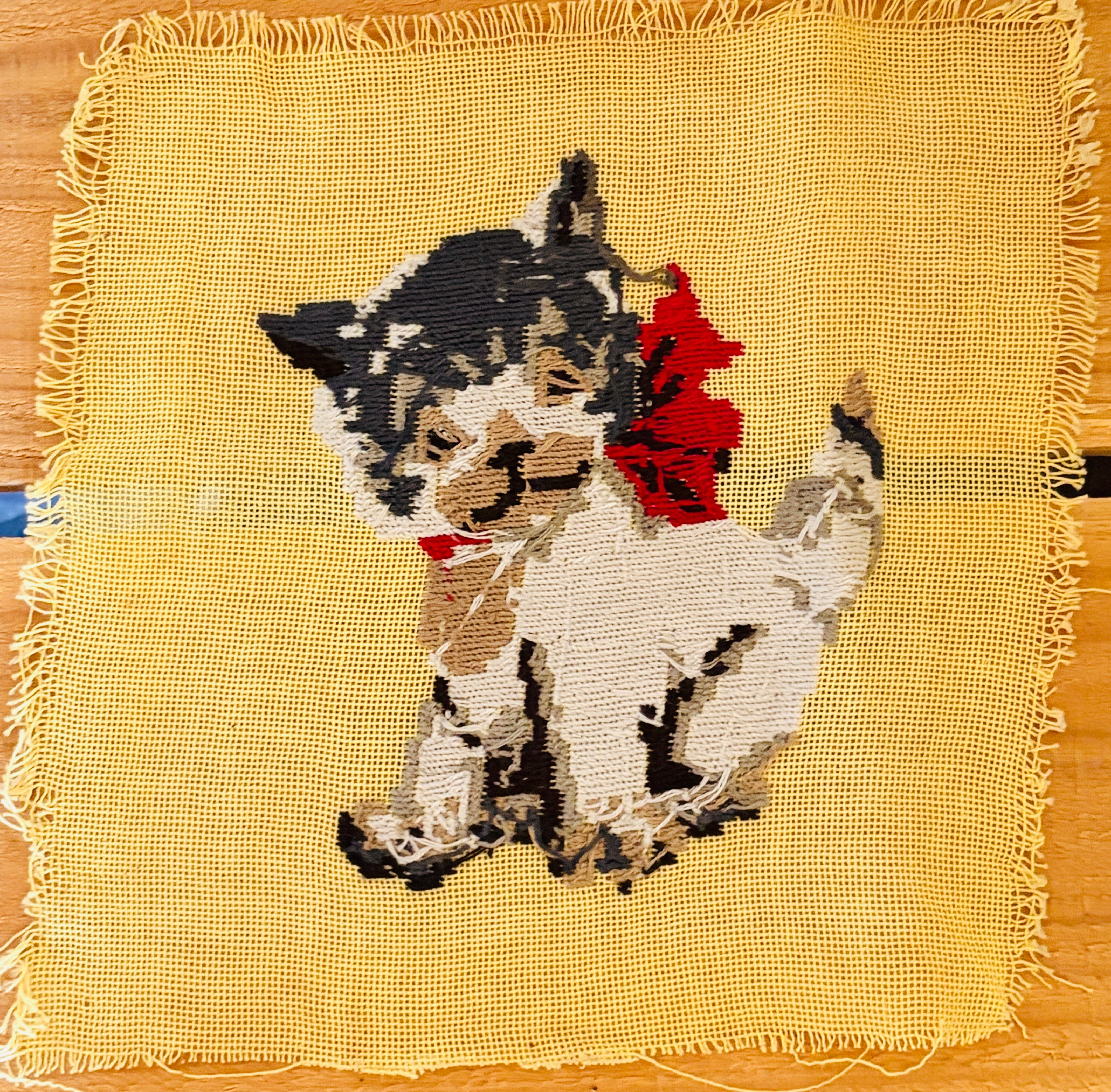 茶白猫さんのニードルポイント【ハンドメイドのヴィンテージアイテム】