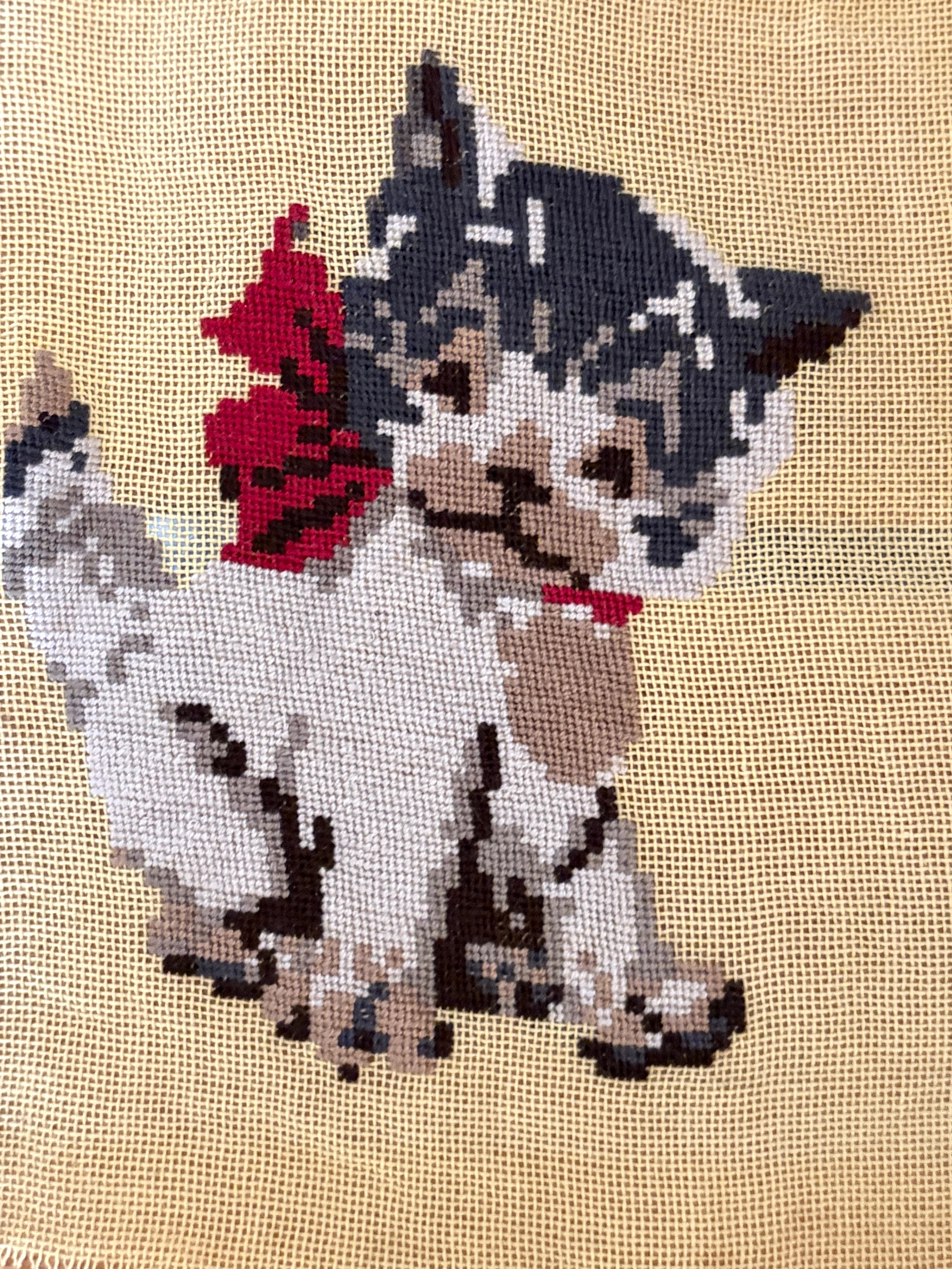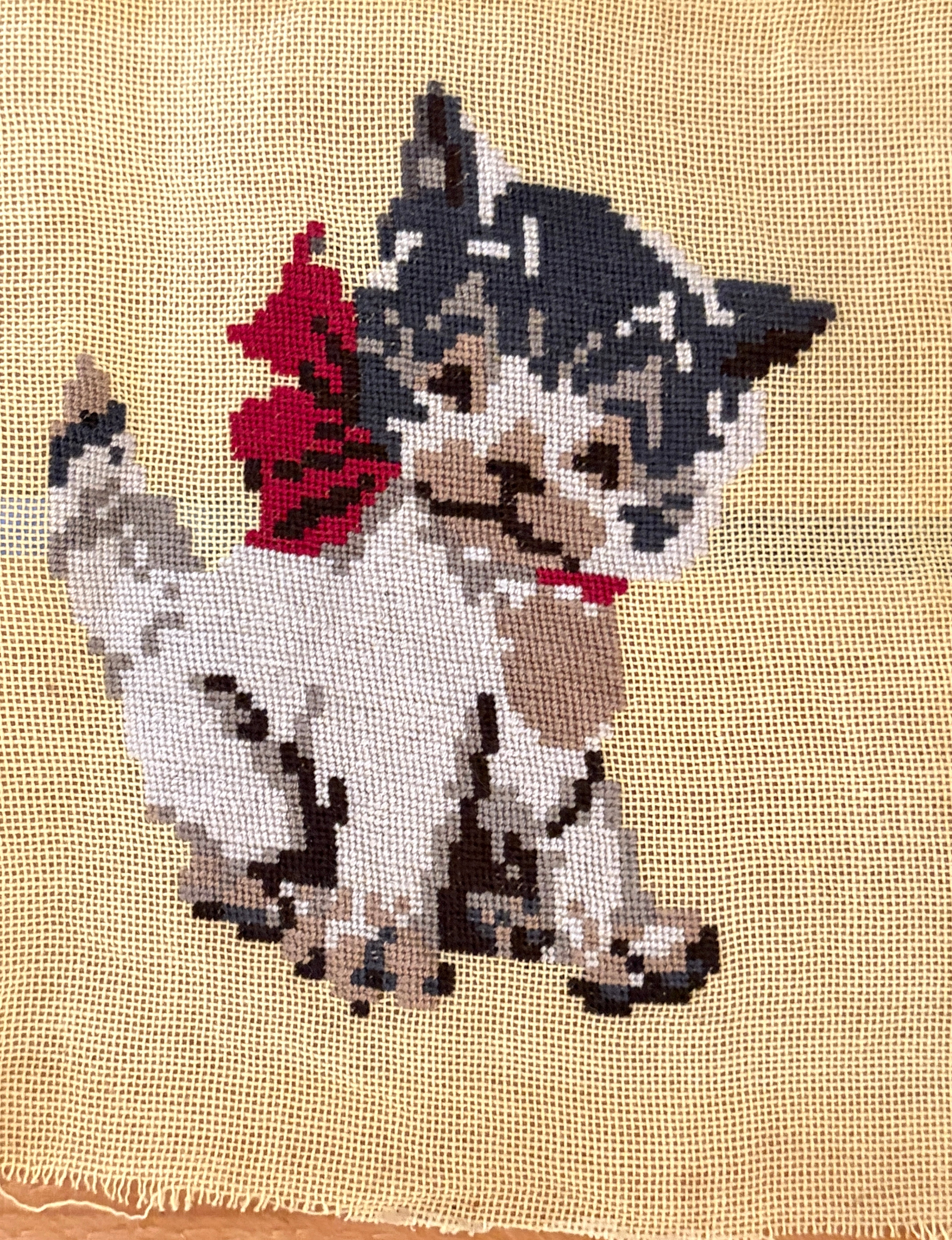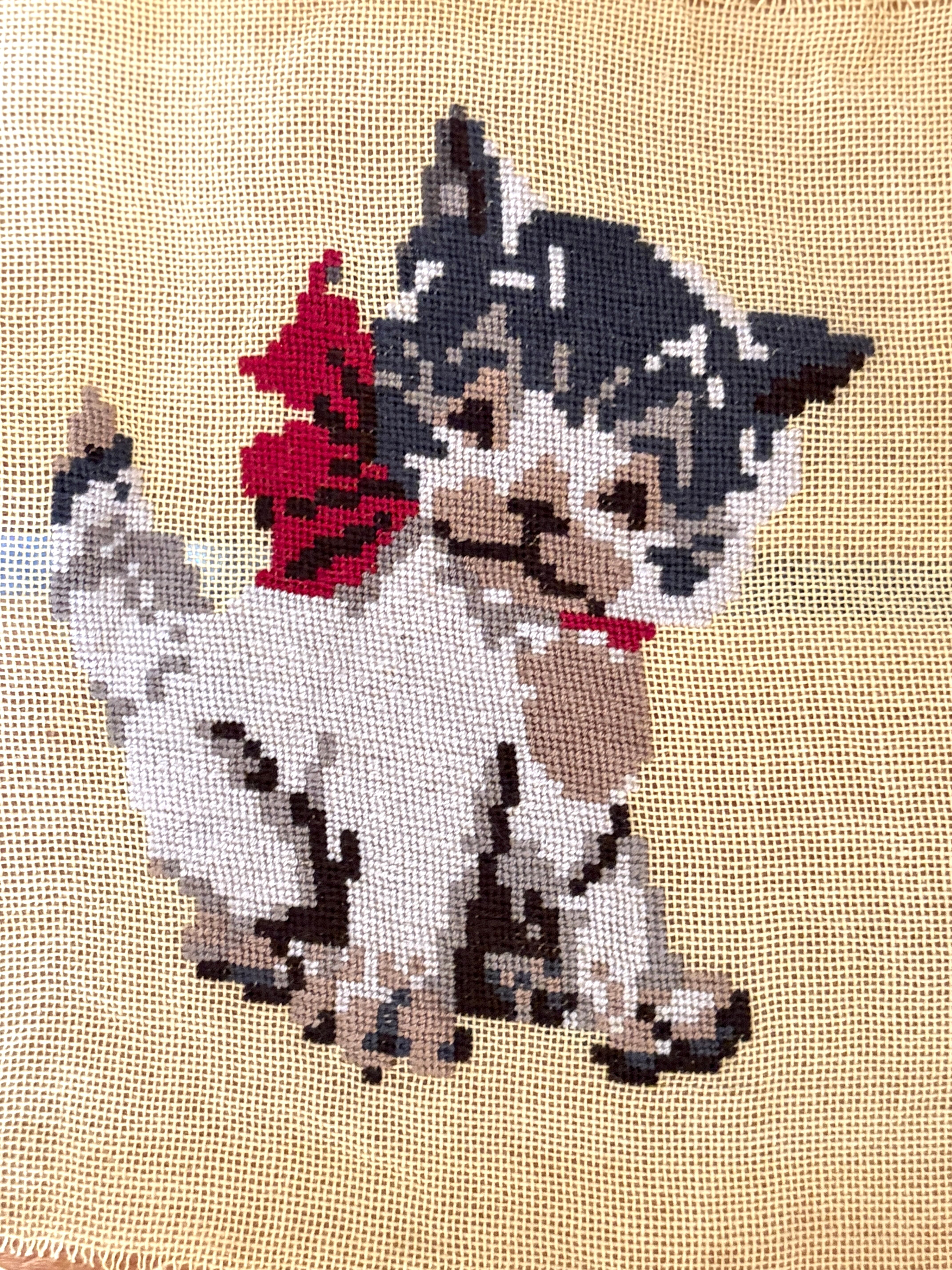 キュートな茶白猫さんのニードルポイントが