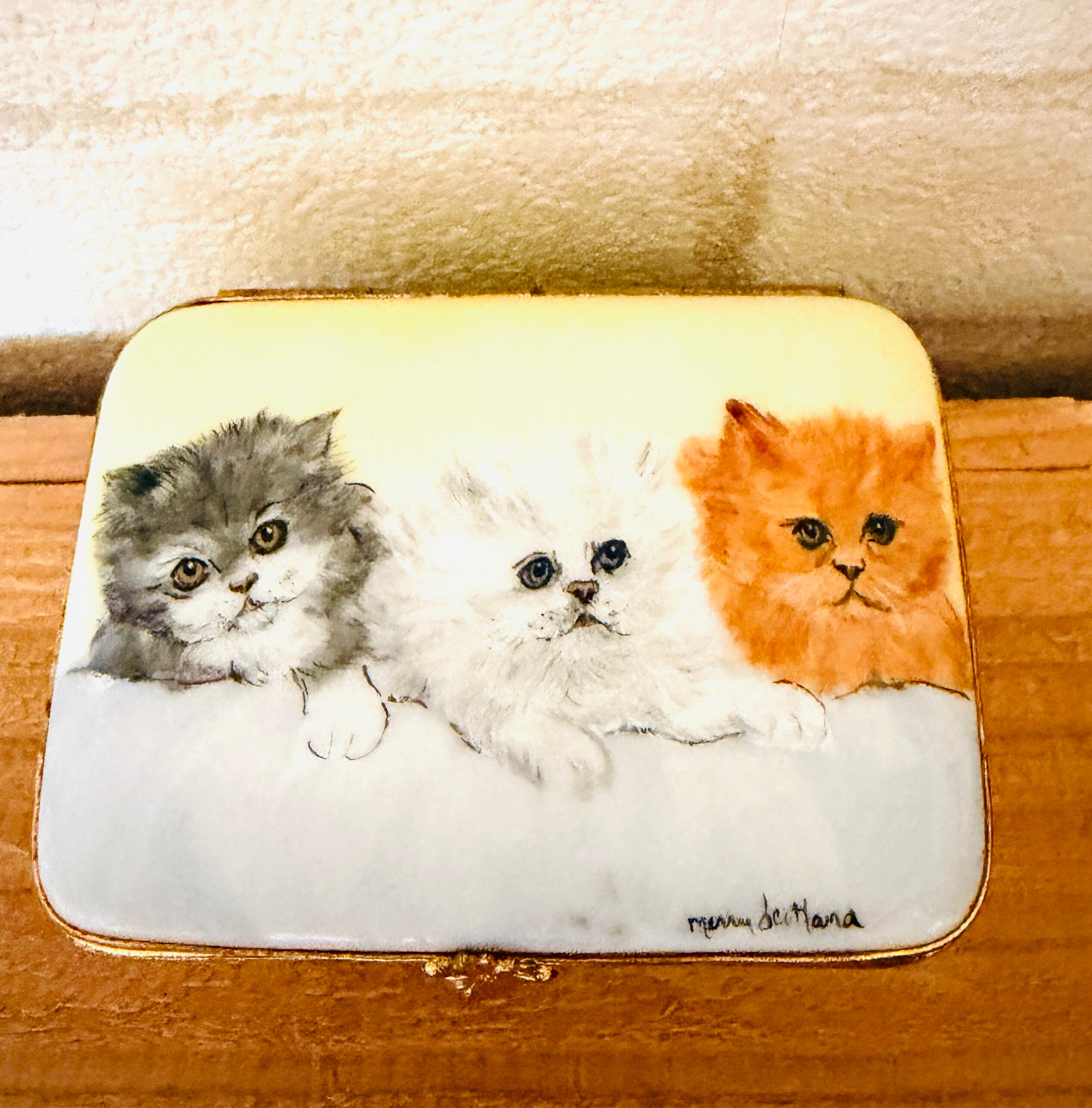 リモージュ3にゃんが可愛いトリンケットbox【フランスより入荷】