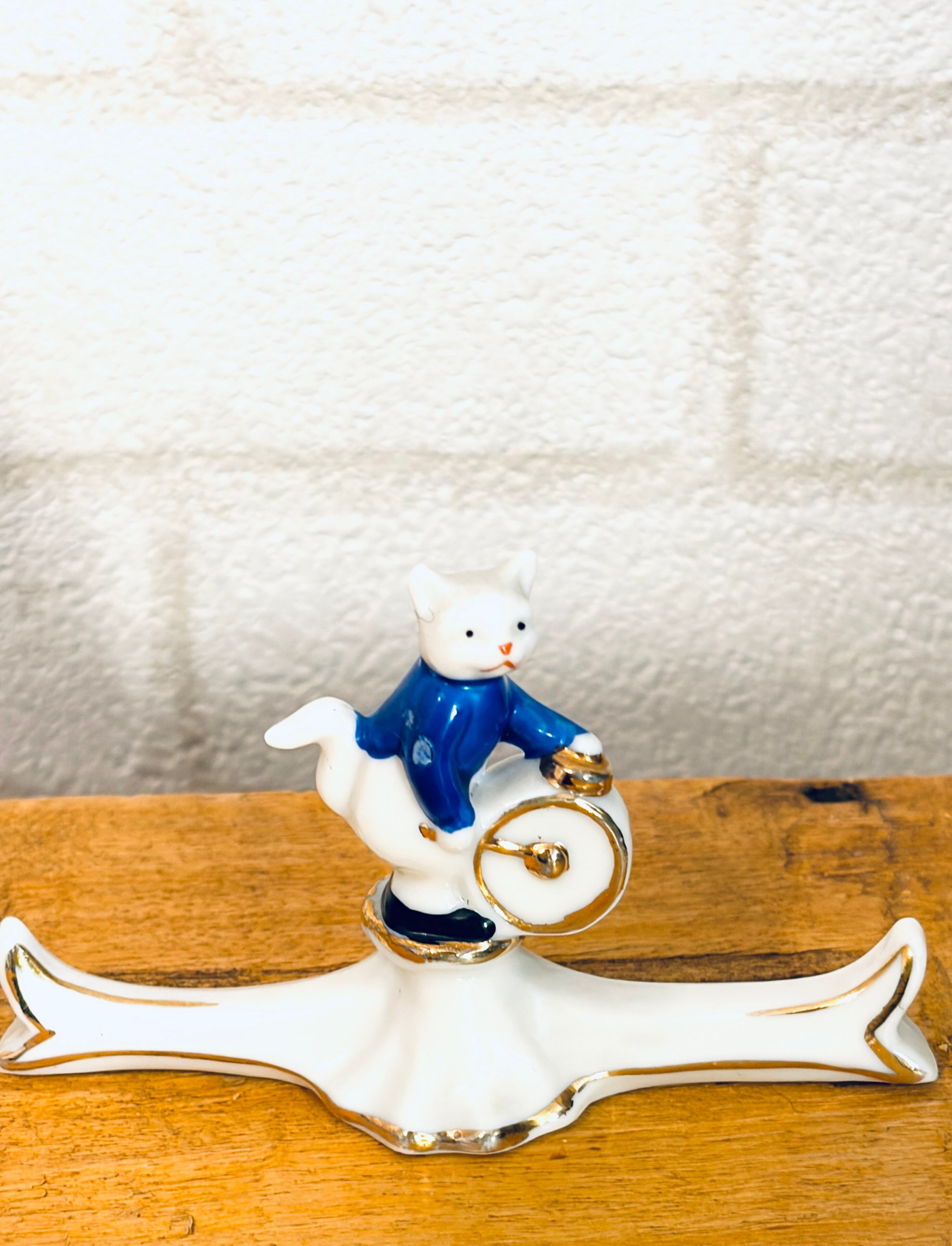 磁器で作られていて猫さんはハンドペイントで