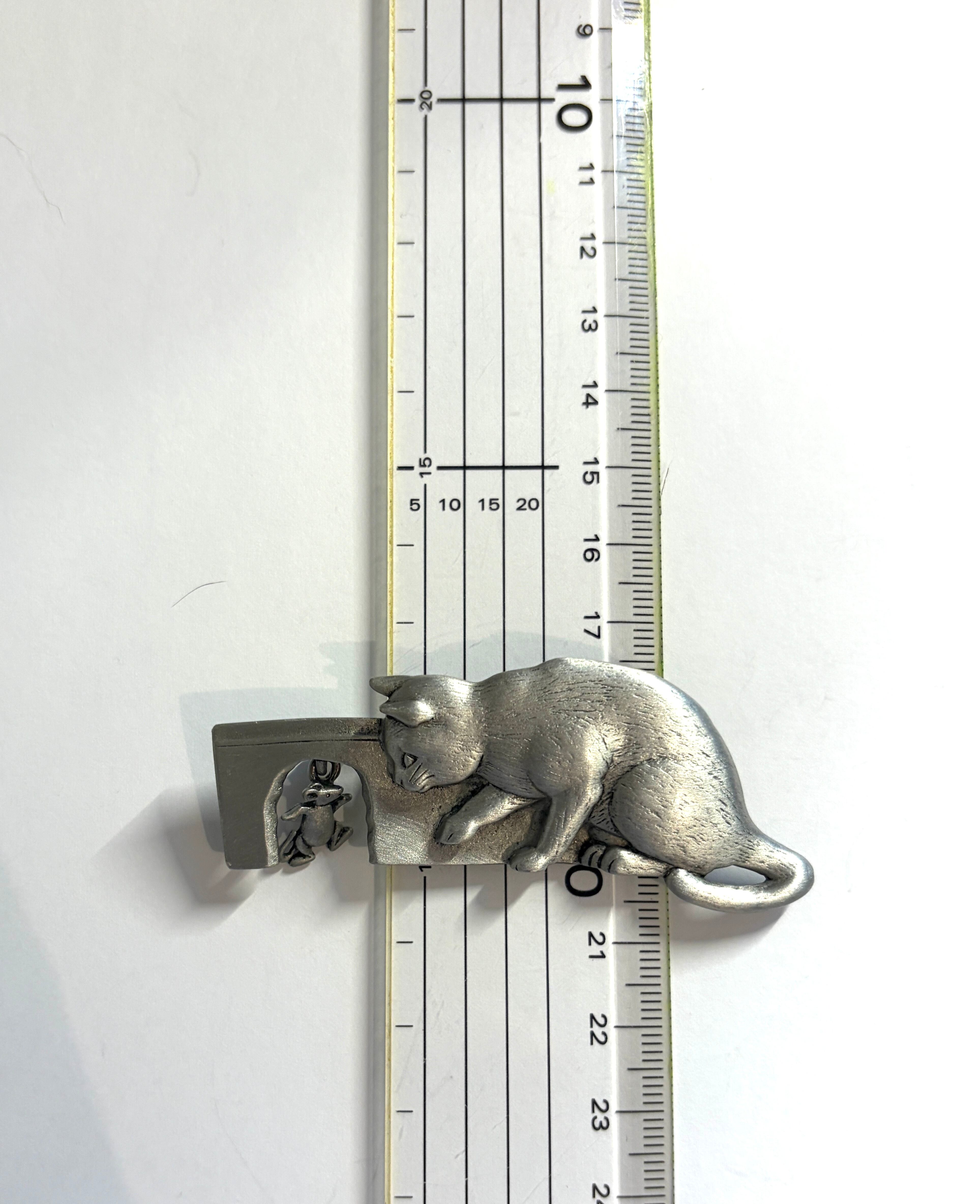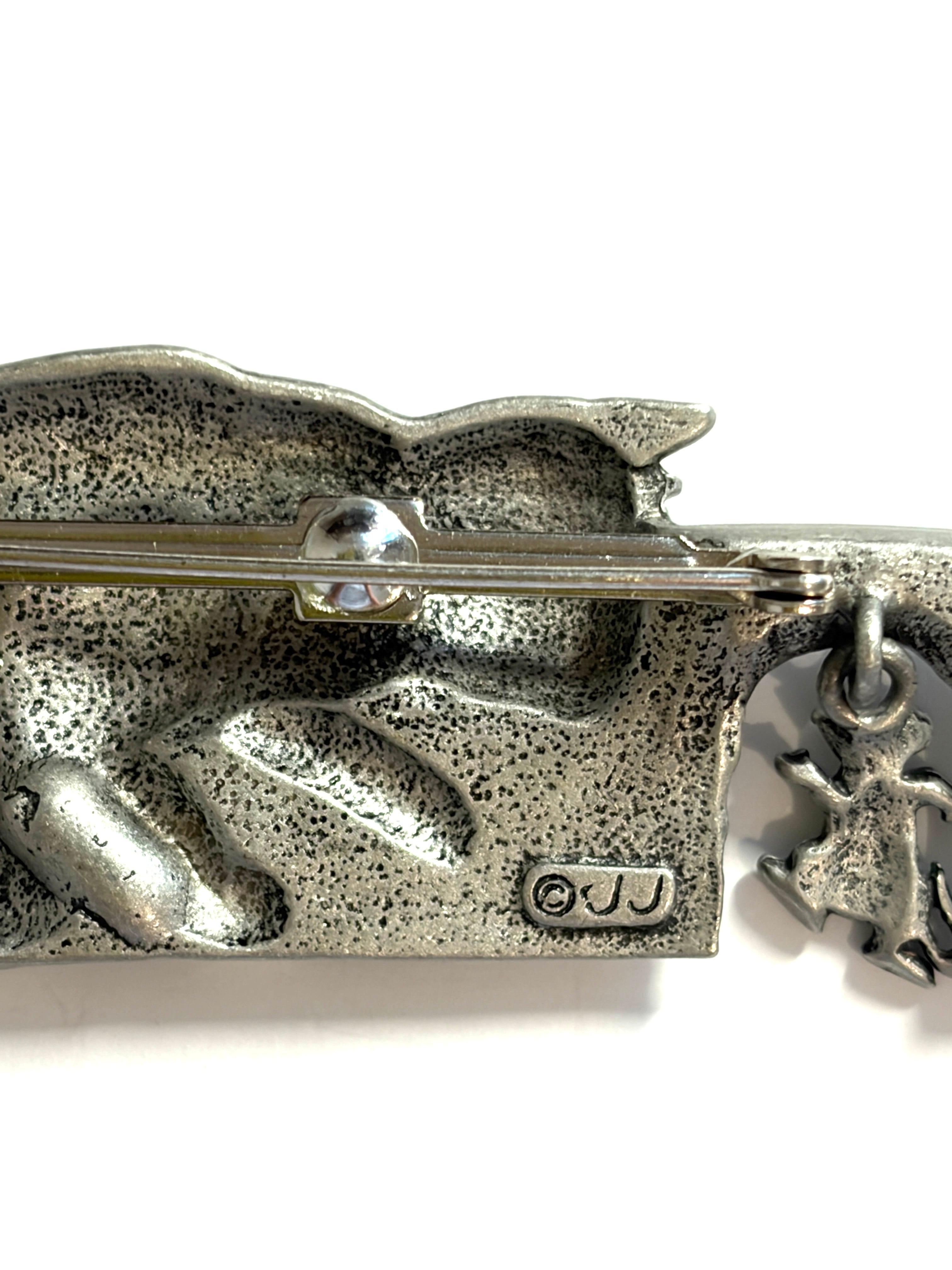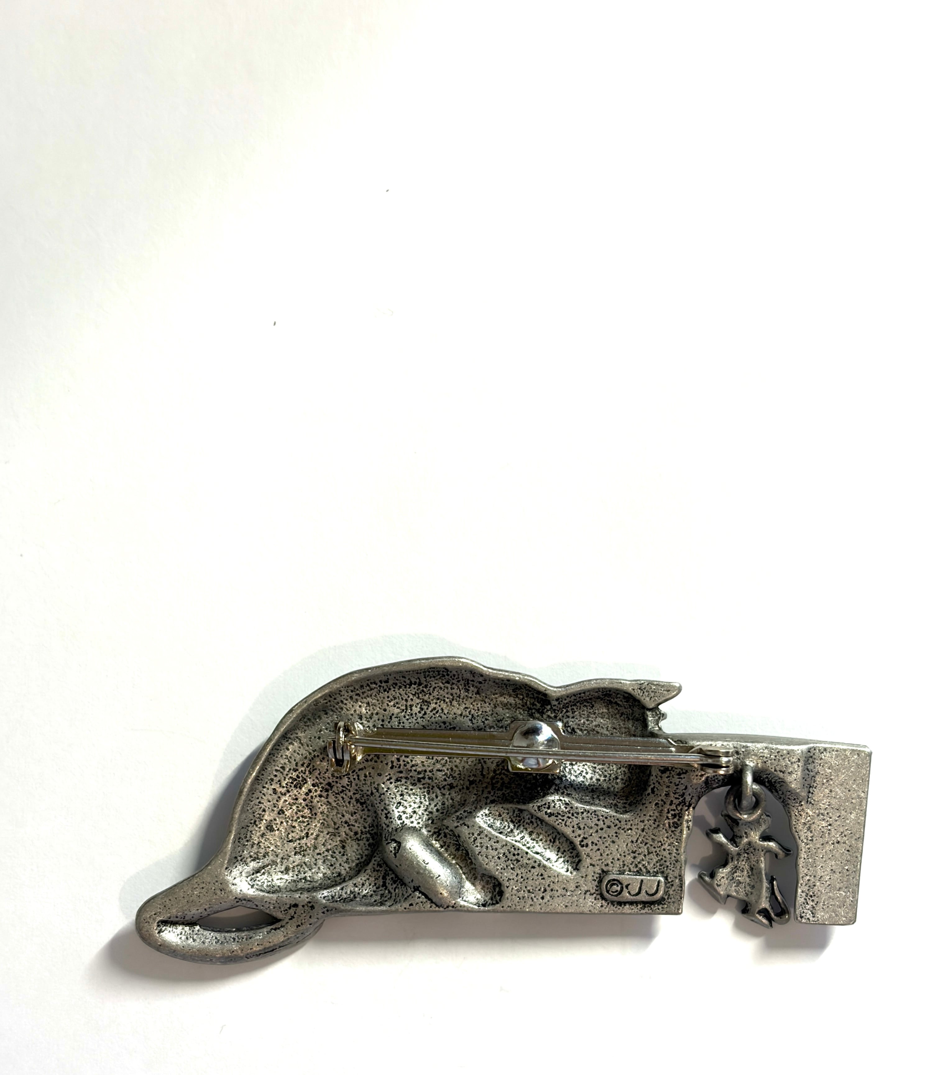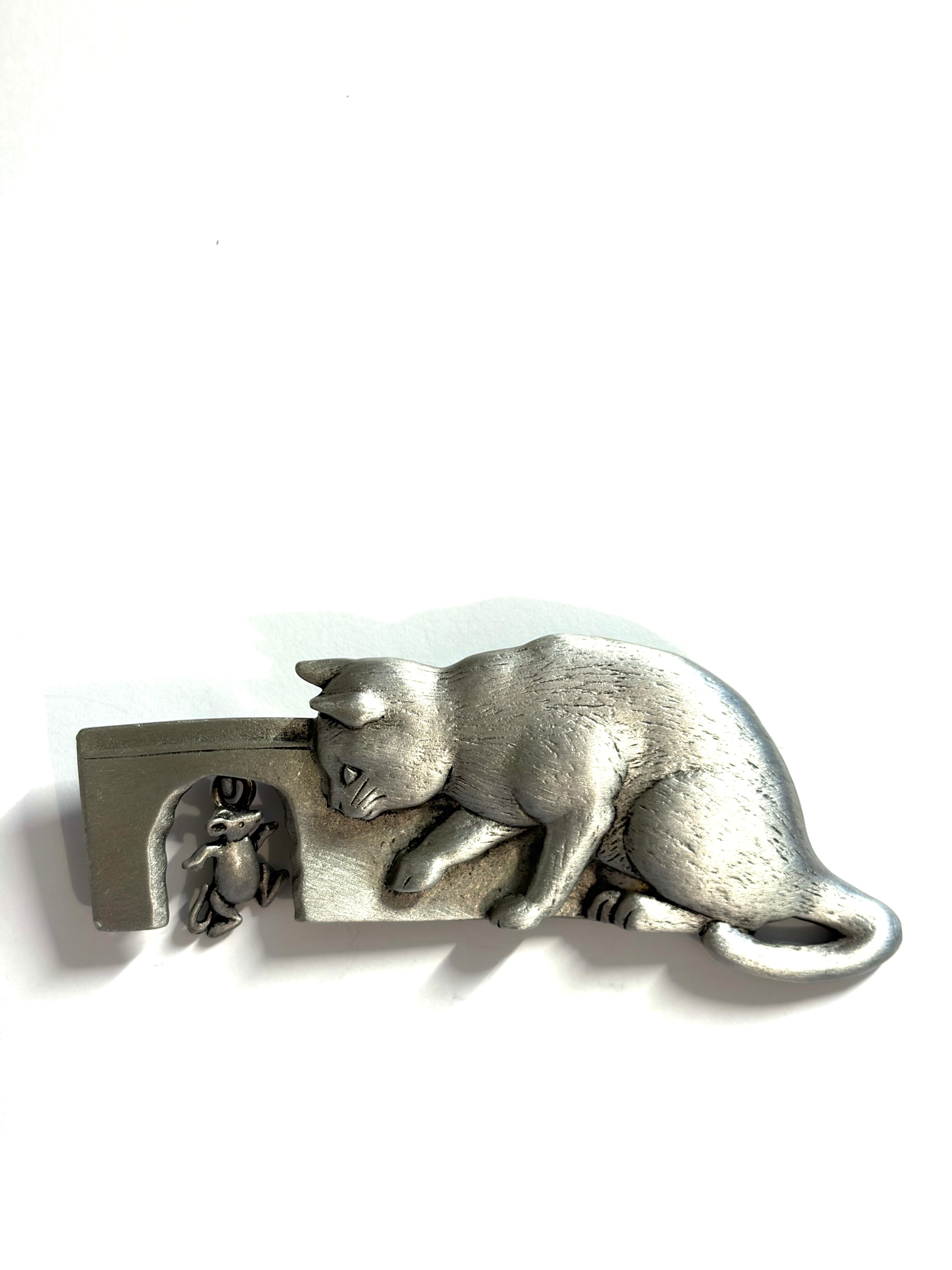 壁の穴から出てくるネズミさんを狙う猫さんのブローチ【アメリカJJ社】