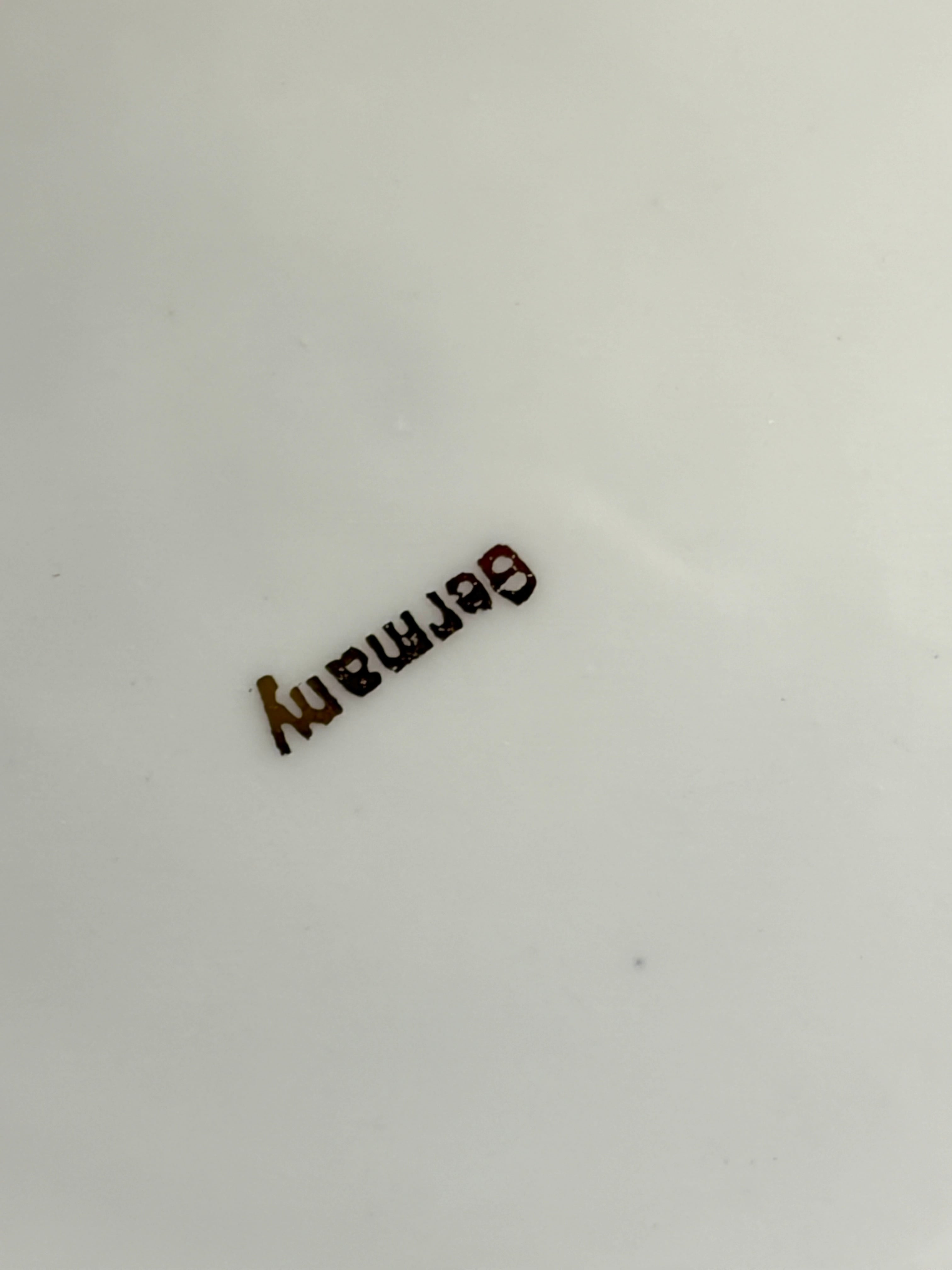 このプレートの絵柄は、主に「転写(デカール)」という技法で描かれ、その後に「ハンドペイント(手描き)」で細部を仕上げる手法がとられている可能性が高いです。