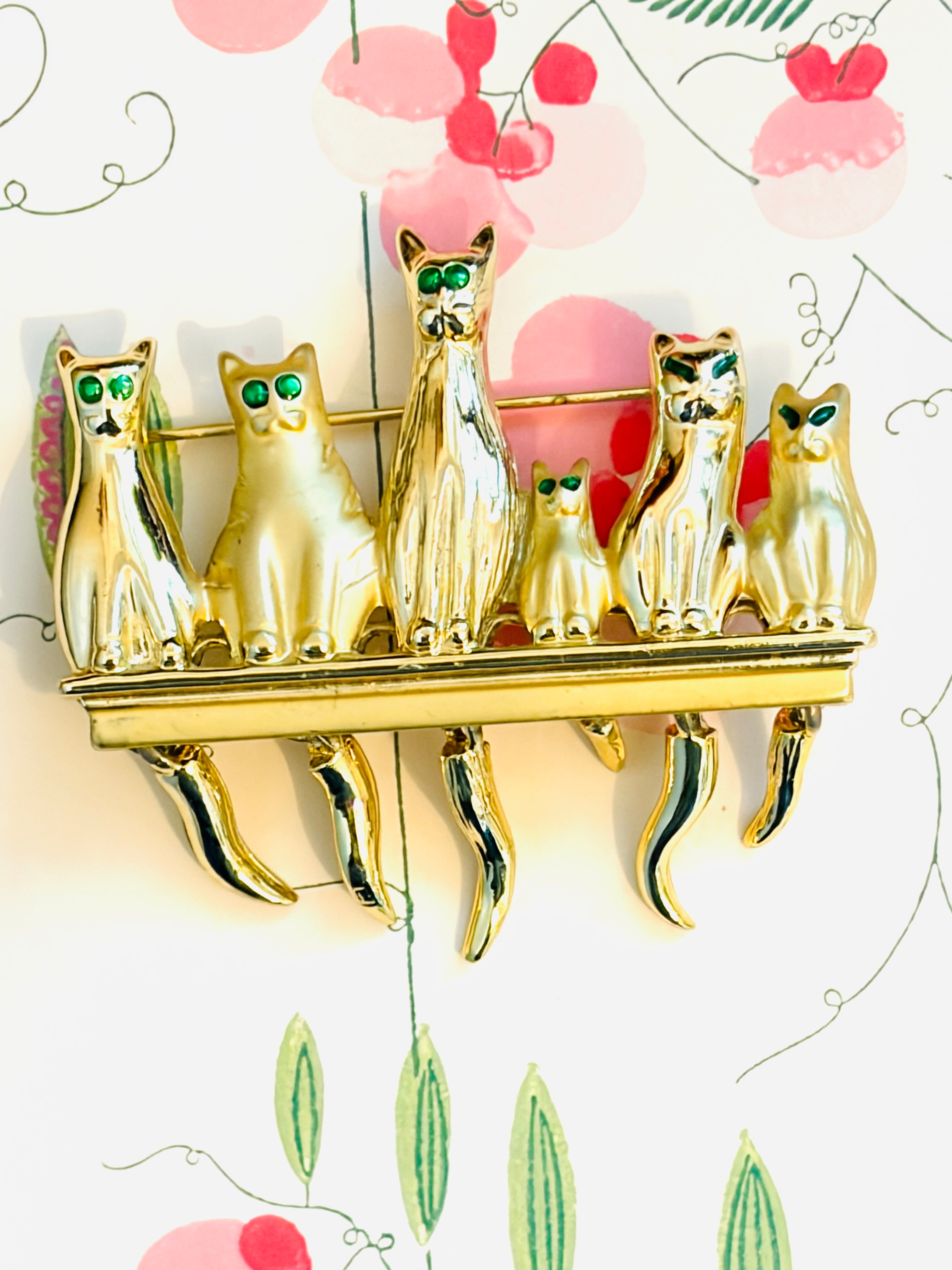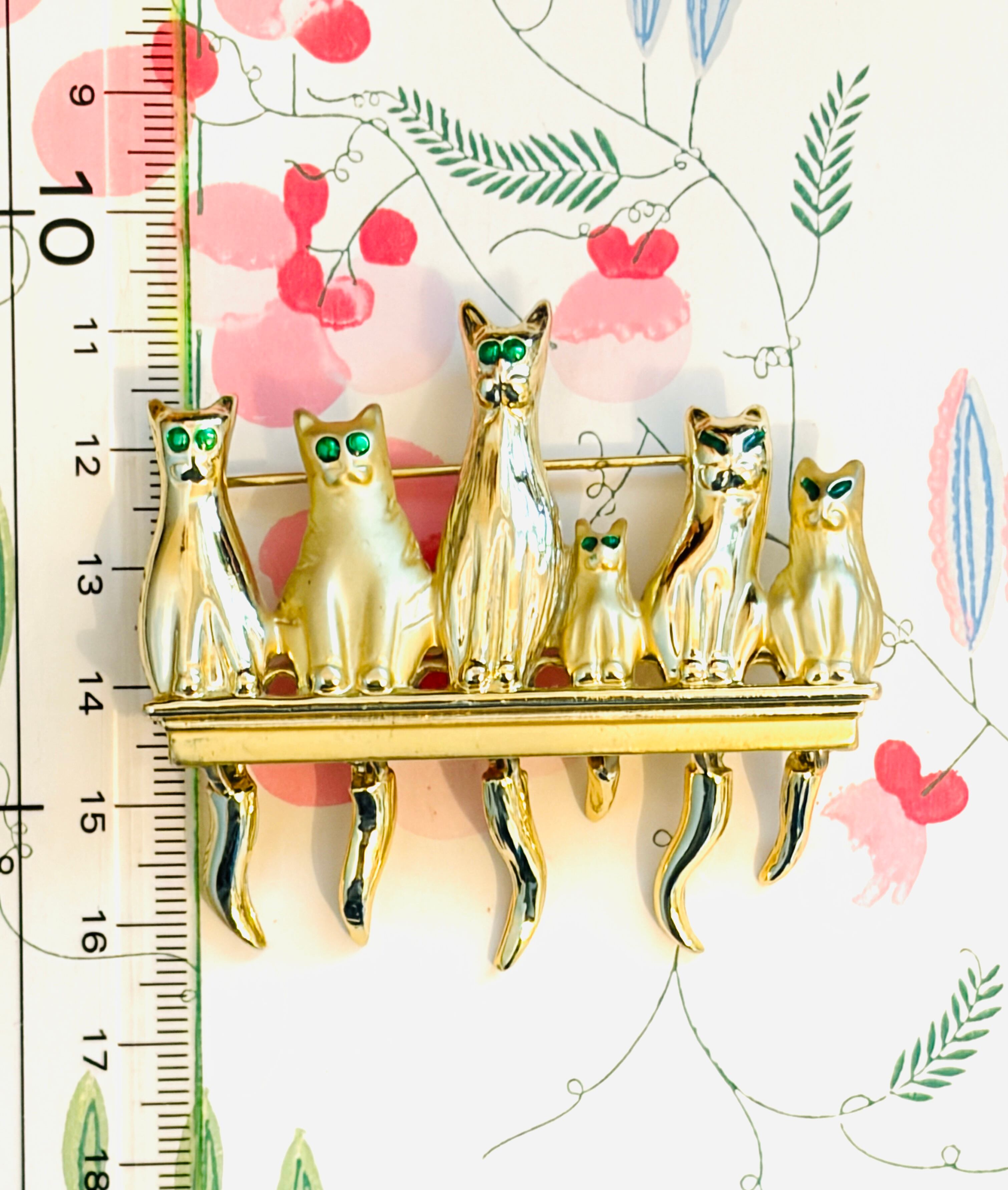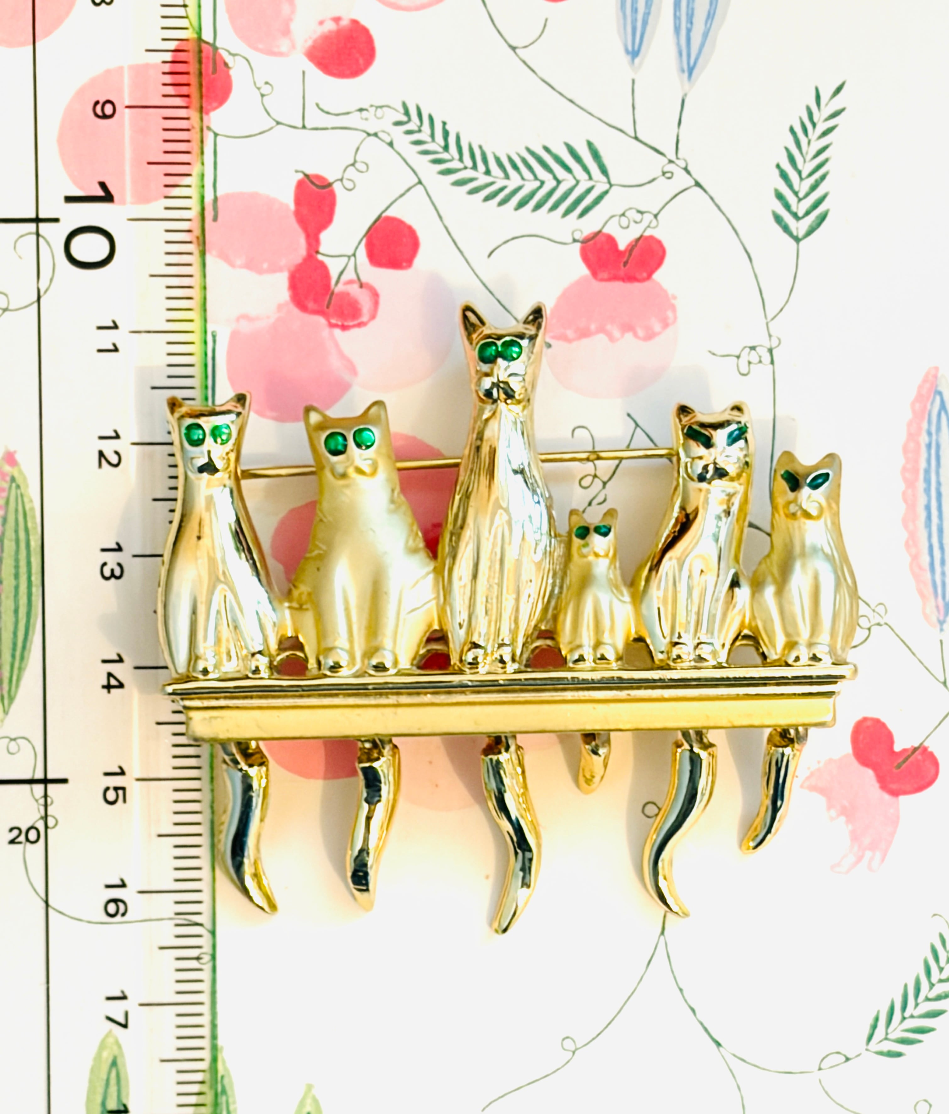 【再入荷】シッポが揺れるよ!!6にゃんずが並ん でるブローチ【アメリカより入荷】