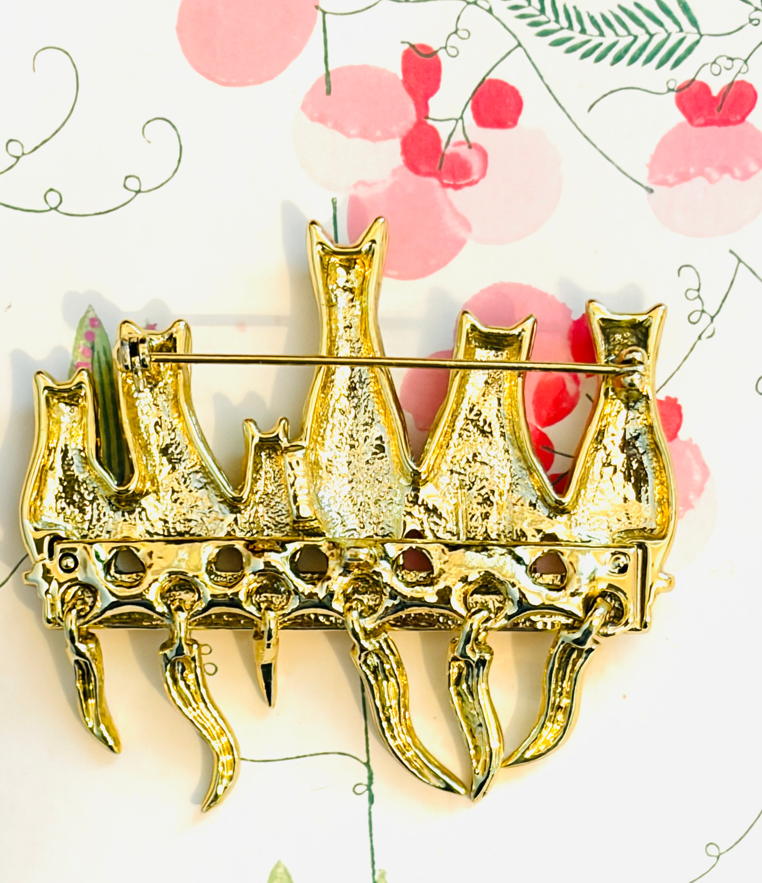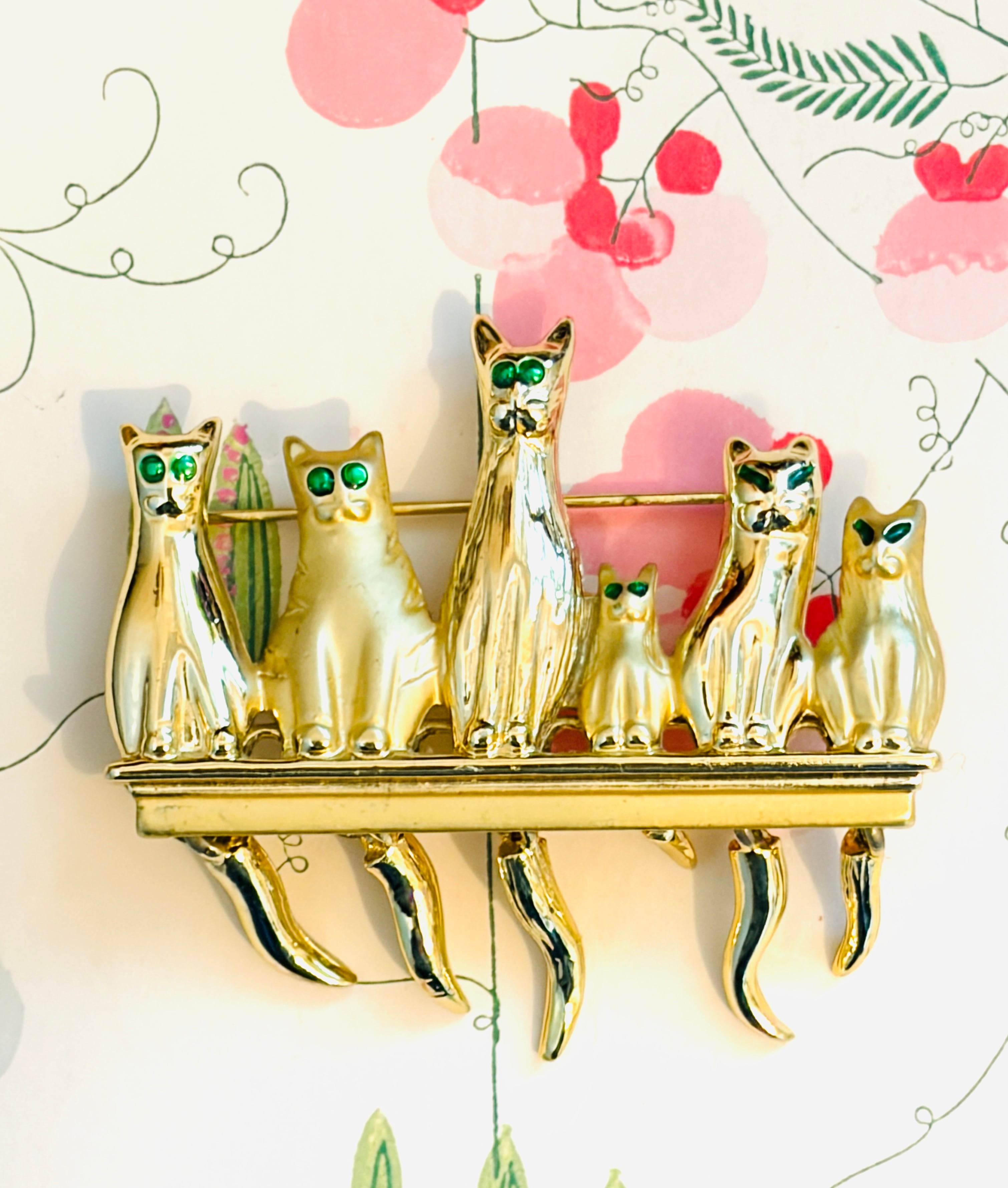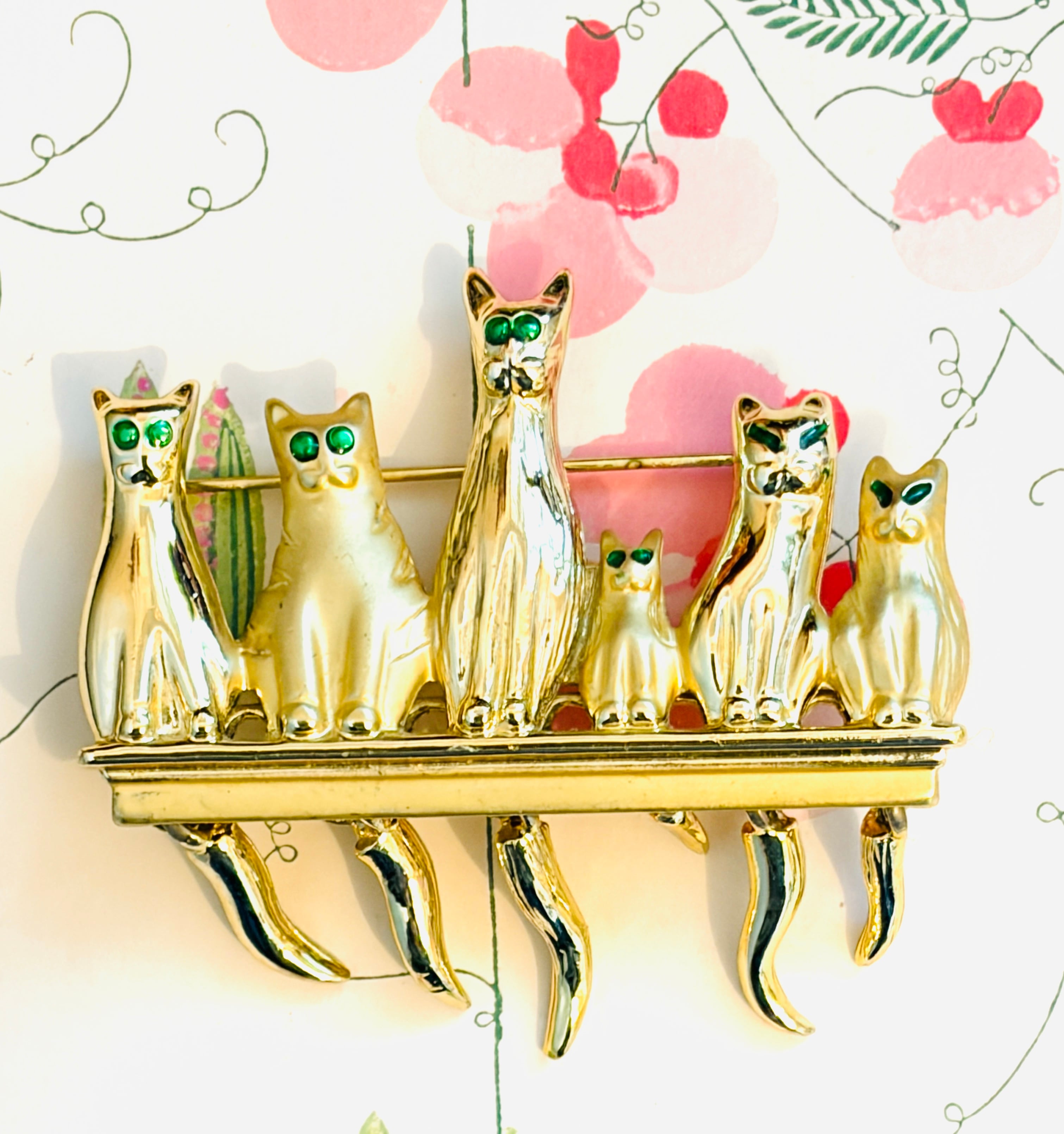 【再入荷】シッポが揺れるよ!!6にゃんずが並ん でるブローチ【アメリカより入荷】